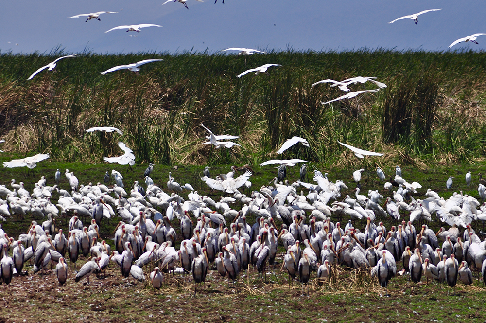 有食鹽、天然堿、鳥糞層等資源。游覽勝地,有"飛禽樂園"之稱。每年一定時期,紅鶴云集湖區(qū),綿延數(shù)公里,十分鮮艷。還有野牛、獅、象、長頸鹿、猴等動物。1960年辟為野生動物園。李仁奇 攝