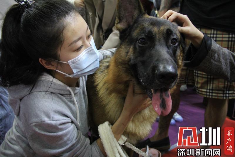 記者與觀眾帶來(lái)的自家寵物犬進(jìn)行互動(dòng)。