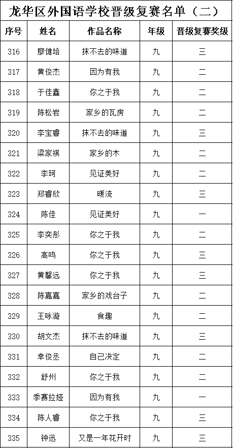自2021年1月,活動征稿啟動以來,獲得了深圳市廣大中小學(xué)生、教師、文學(xué)愛好者的熱烈響應(yīng)積極參與,吸引了深圳百余所學(xué)校的上萬人關(guān)注報名?,F(xiàn)公布龍華區(qū)外國語學(xué)校專場晉級復(fù)賽名單如下: