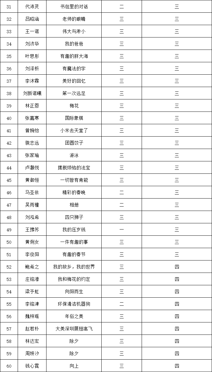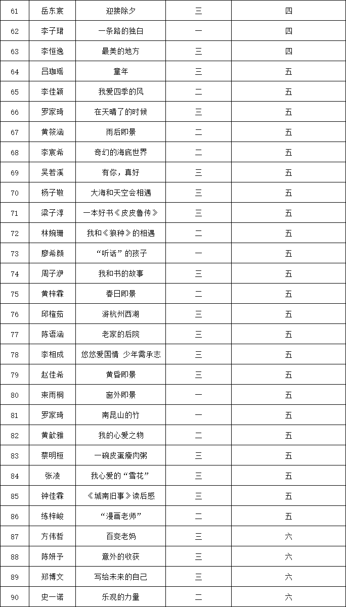 自2021年1月,活動(dòng)征稿啟動(dòng)以來(lái),獲得了深圳市廣大中小學(xué)生、教師、文學(xué)愛好者的熱烈響應(yīng)積極參與,吸引了深圳百余所學(xué)校的上萬(wàn)人關(guān)注報(bào)名?,F(xiàn)公布福田區(qū)明德實(shí)驗(yàn)學(xué)校碧海校區(qū)專場(chǎng)晉級(jí)復(fù)賽名單如下: