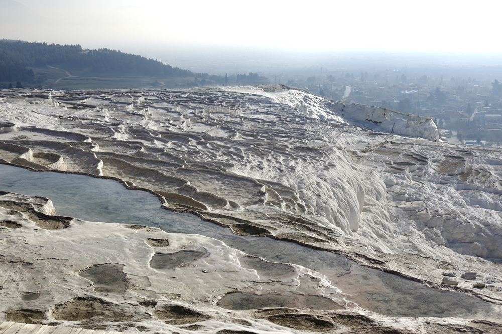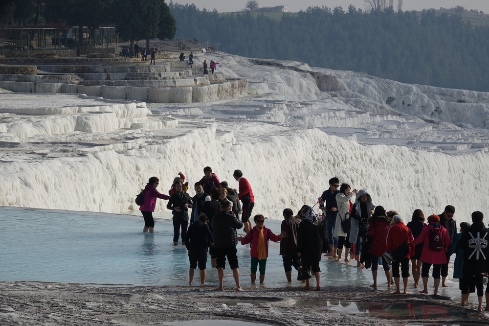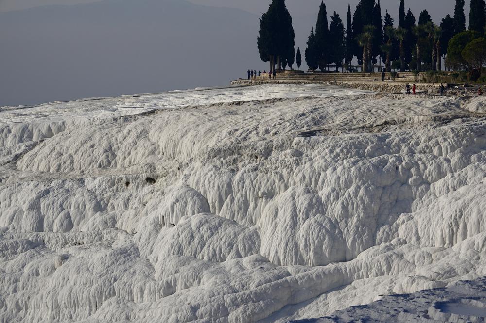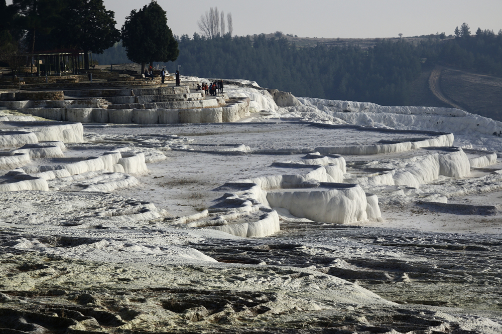 在這里你會(huì)聽到這樣一個(gè)傳說:曾經(jīng),牧羊人安迪密恩為了和希臘月神瑟莉妮幽會(huì),竟然忘記了擠羊奶,致使羊奶恣意橫流,蓋住了整座丘陵,這便是土耳其民間有關(guān)棉花堡的美麗來由。李仁奇 攝