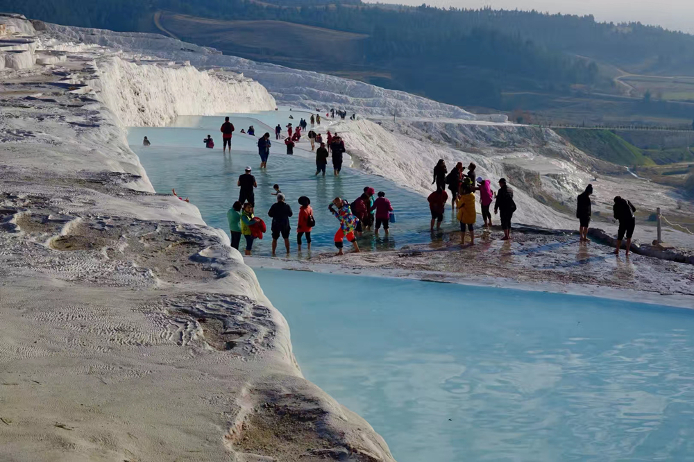 棉花堡是土耳其最著名的旅游景區(qū)之一,位于土耳其西南部紡織工業(yè)城市代尼茲利附近,與緊鄰它的希拉波利斯古城一起被聯(lián)合國教科文組織列為世界自然文化雙遺產(chǎn)。李仁奇 攝