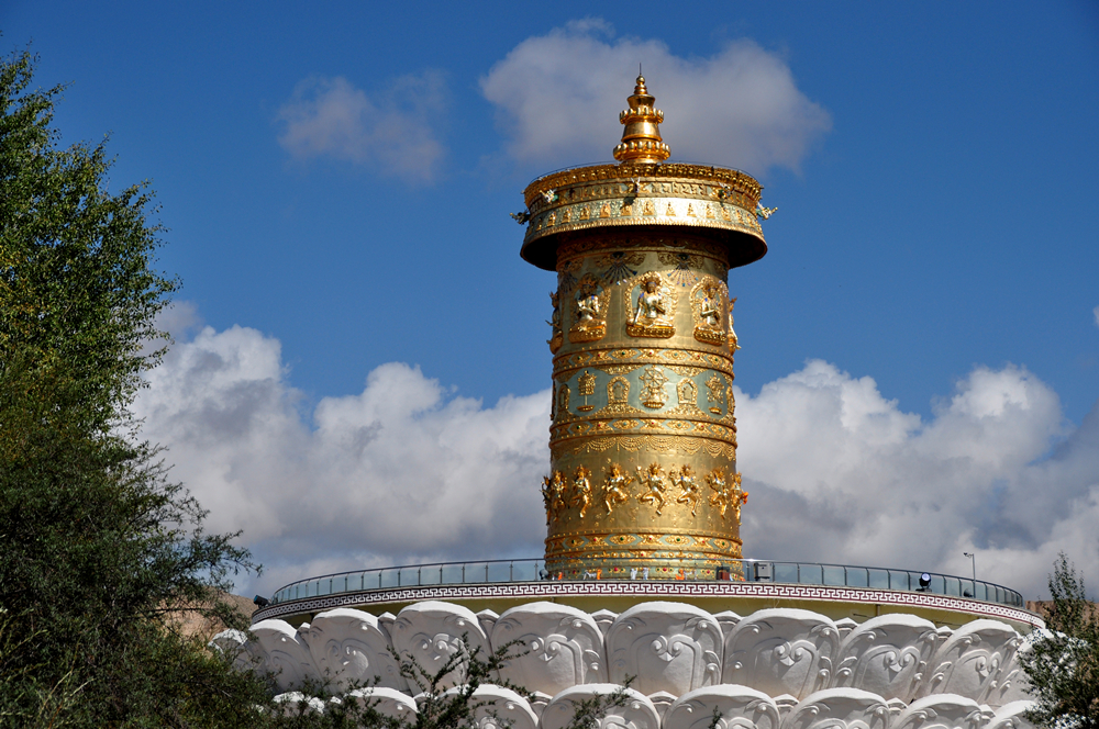 青海貴德縣的中華福運輪筒高26.285米,直徑為10.22米,底座高15米。2012年建成后,頂替甘肅肅南轉(zhuǎn)經(jīng)筒成為世界上最大的轉(zhuǎn)經(jīng)筒。李仁奇 攝