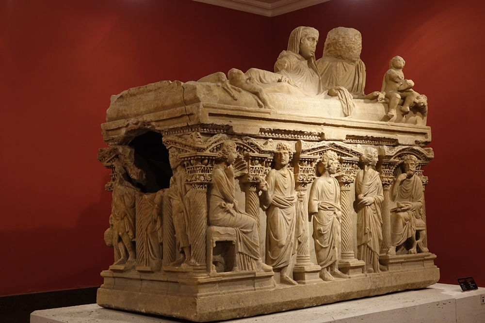 赫拉克勒斯石棺,它的側(cè)立面描繪赫拉克勒斯斬殺九頭蛇、與獅子搏斗、偷盜金蘋果等12項(xiàng)苦力后升為神的傳奇故事,浮雕保存完整、栩栩如生,展現(xiàn)了古羅馬精湛的雕塑工藝。李仁奇 攝