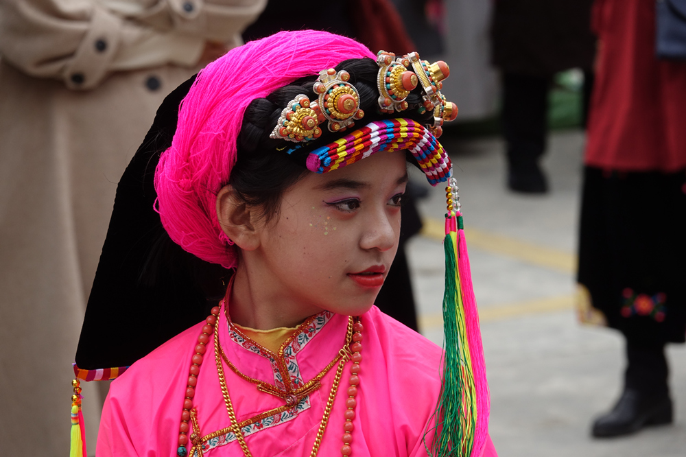 嘉絨人多彩的頭飾(正面)。李仁奇 攝