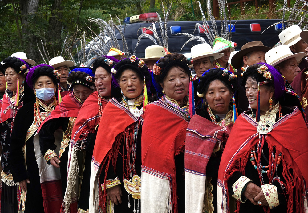 嘉絨人居住的地方海拔大多在2000—3000米,氣候比較溫和,其服裝以棉質(zhì)為主,較少采用皮毛,婦女的頭巾和裙裾色彩鮮艷、講究刺繡,與牧區(qū)的藏胞有明顯的區(qū)別。李仁奇 攝