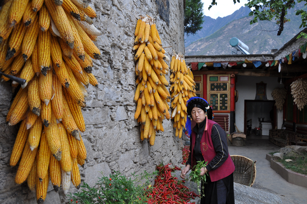 嘉絨藏族是居住在四川省甘孜藏族自治州、阿壩藏族羌族自治州部分地區(qū)以及雅安市、涼山彝族自治州個別鄉(xiāng)鎮(zhèn),講嘉絨語,以農(nóng)業(yè)生產(chǎn)為主的藏人,藏區(qū)稱他們?yōu)椤敖q巴”。李仁奇 攝