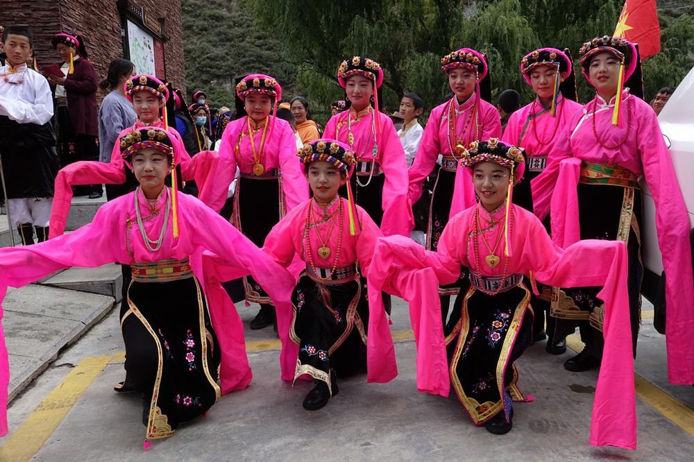 巴底小學(xué)的同學(xué)們身著嘉絨服飾,舞蹈結(jié)合丹巴傳統(tǒng)歌舞藝術(shù),充分展現(xiàn)了丹巴深厚的文化底蘊(yùn)。李仁奇 攝