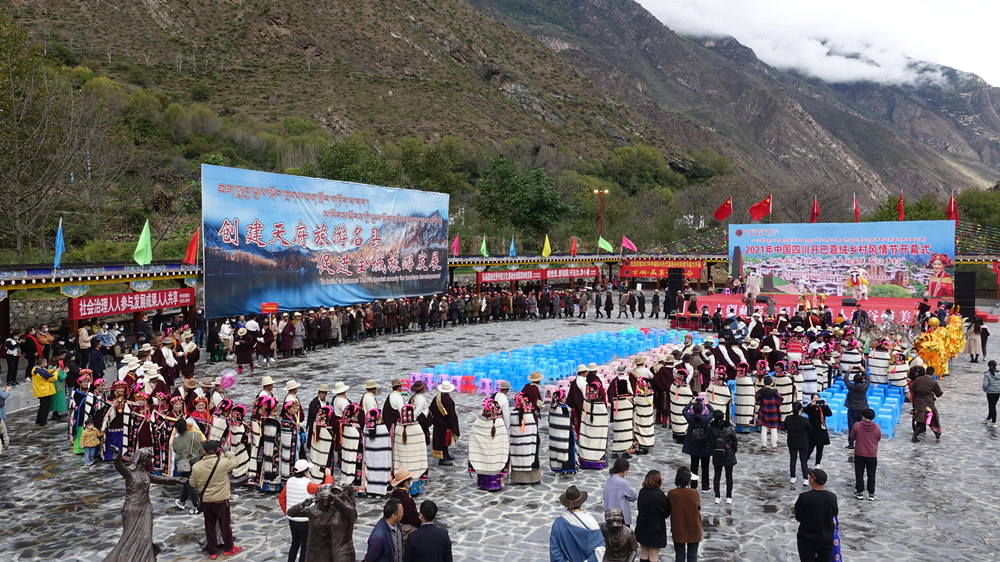 位于丹巴縣城以北20多公里的巴底鎮(zhèn)是遐邇聞名的“美人谷”,“2021丹巴嘉絨鄉(xiāng)村風(fēng)情節(jié)”開幕式最近在這里舉行。李仁奇 攝