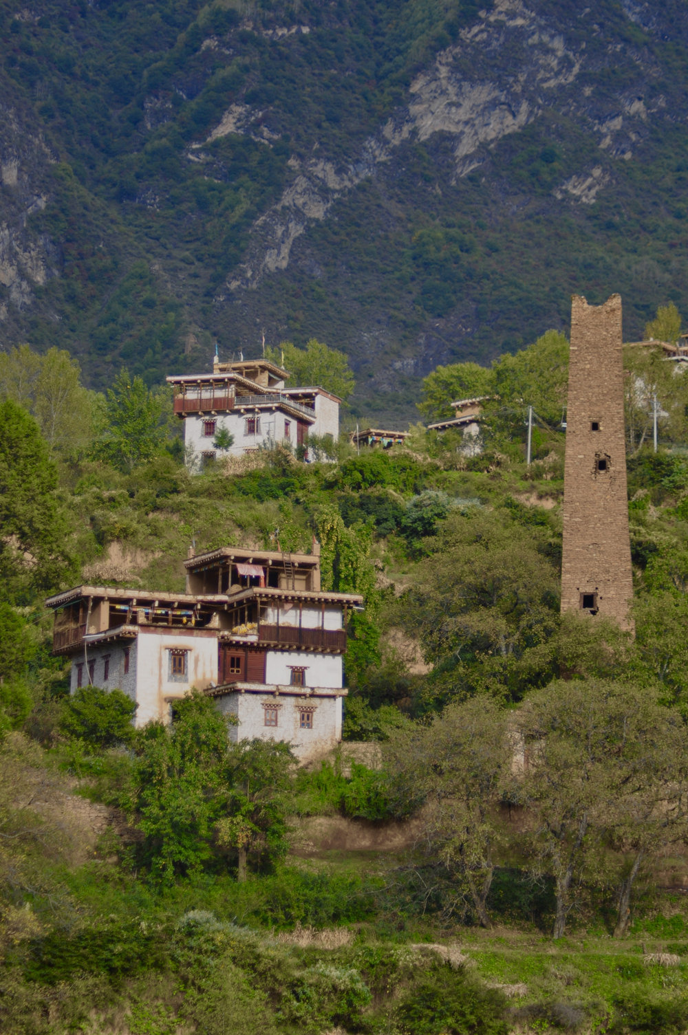 古碉修建的選址因地制宜,既要顧及防洪避災(zāi),還要考慮易守難攻,多建造在視野開闊、向陽避風(fēng)的山坡上。李仁奇 攝