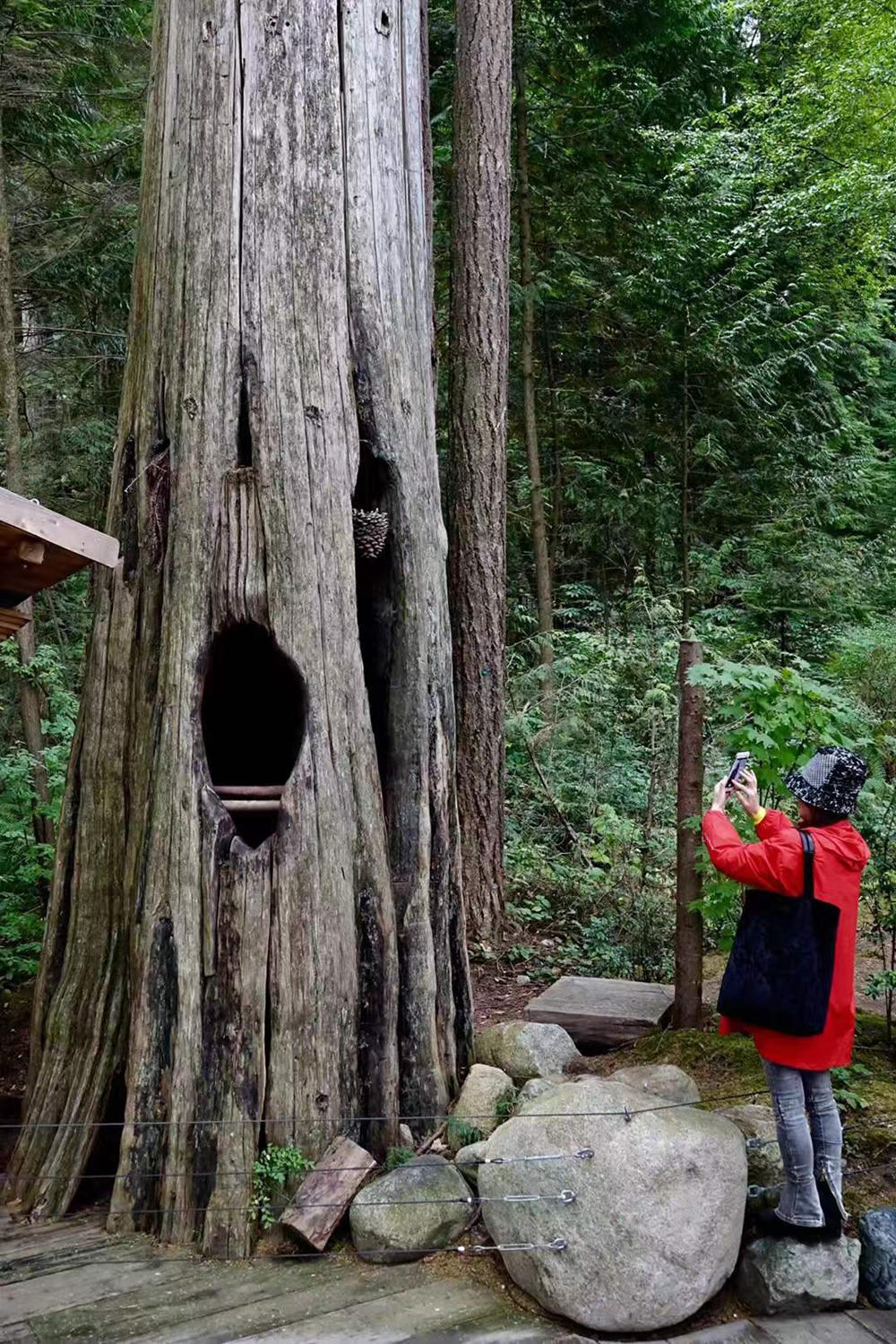 吊橋公園里面很多原始樹木的年齡比他們現(xiàn)在所屬的國度和城市的年紀(jì)還要大。直徑超過一米的樹彼彼皆是,其腰圍連兩個成年男人人都難以合抱過來。李仁奇 攝