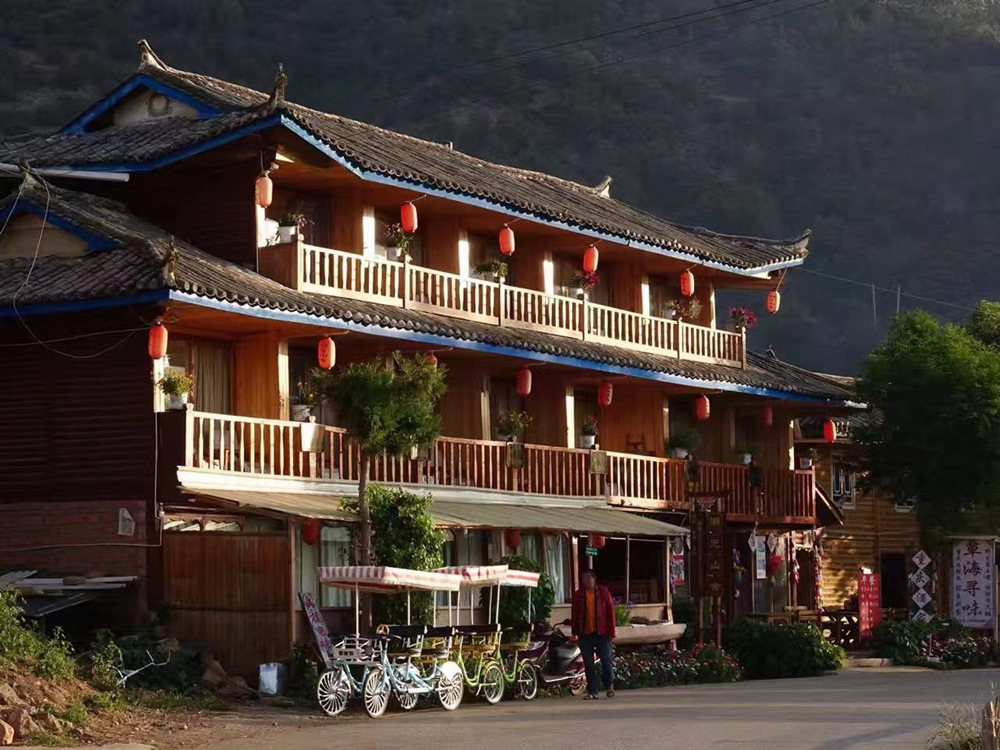 沿湖岸都是摩梭人家的木房子,現(xiàn)在多數(shù)都改造為可提供住宿的旅館。李仁奇 攝