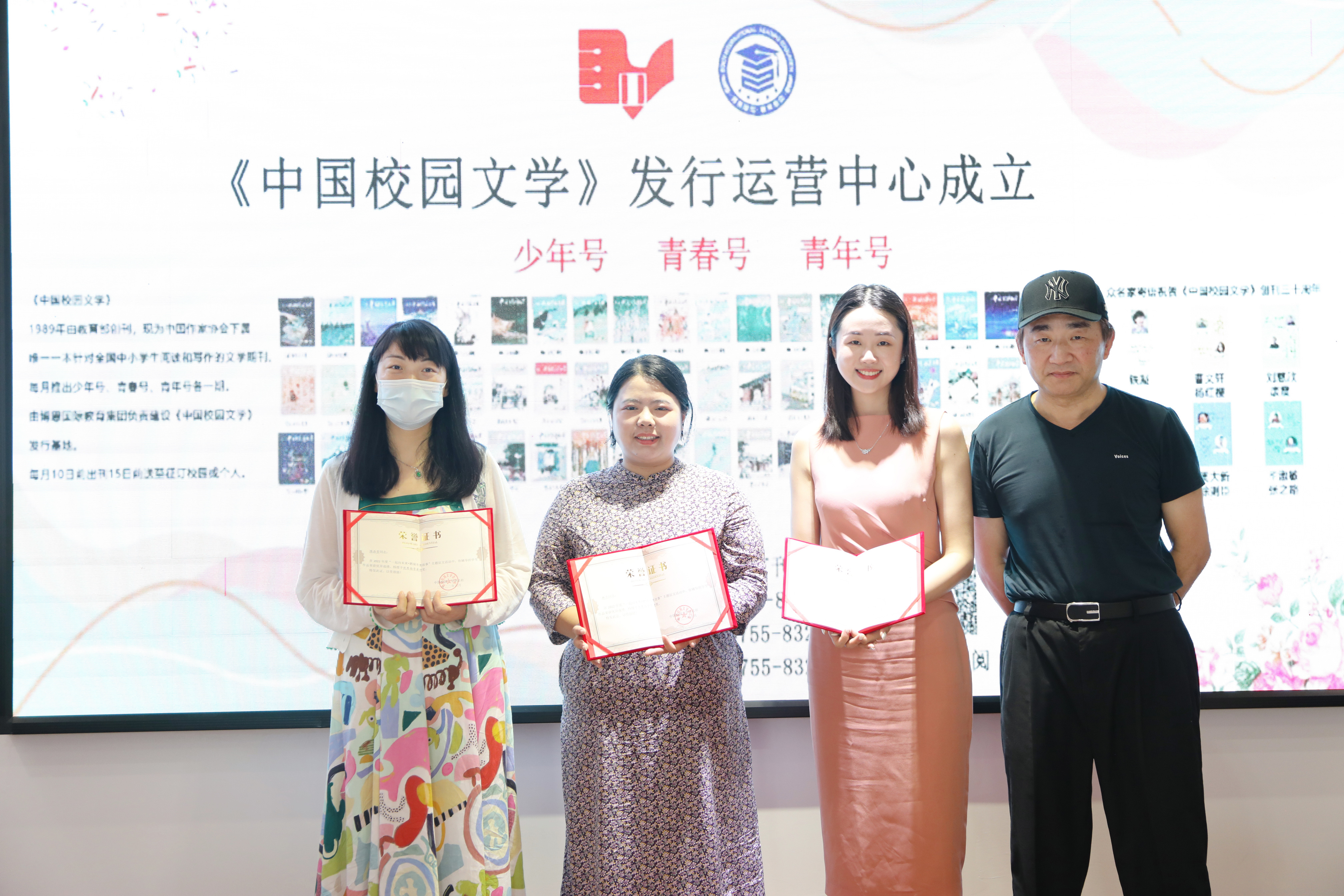 全國(guó)首期中小學(xué)樂(lè)隊(duì)指揮教師培訓(xùn)班發(fā)起者葉維佳為獲獎(jiǎng)教師代表頒獎(jiǎng)并合影