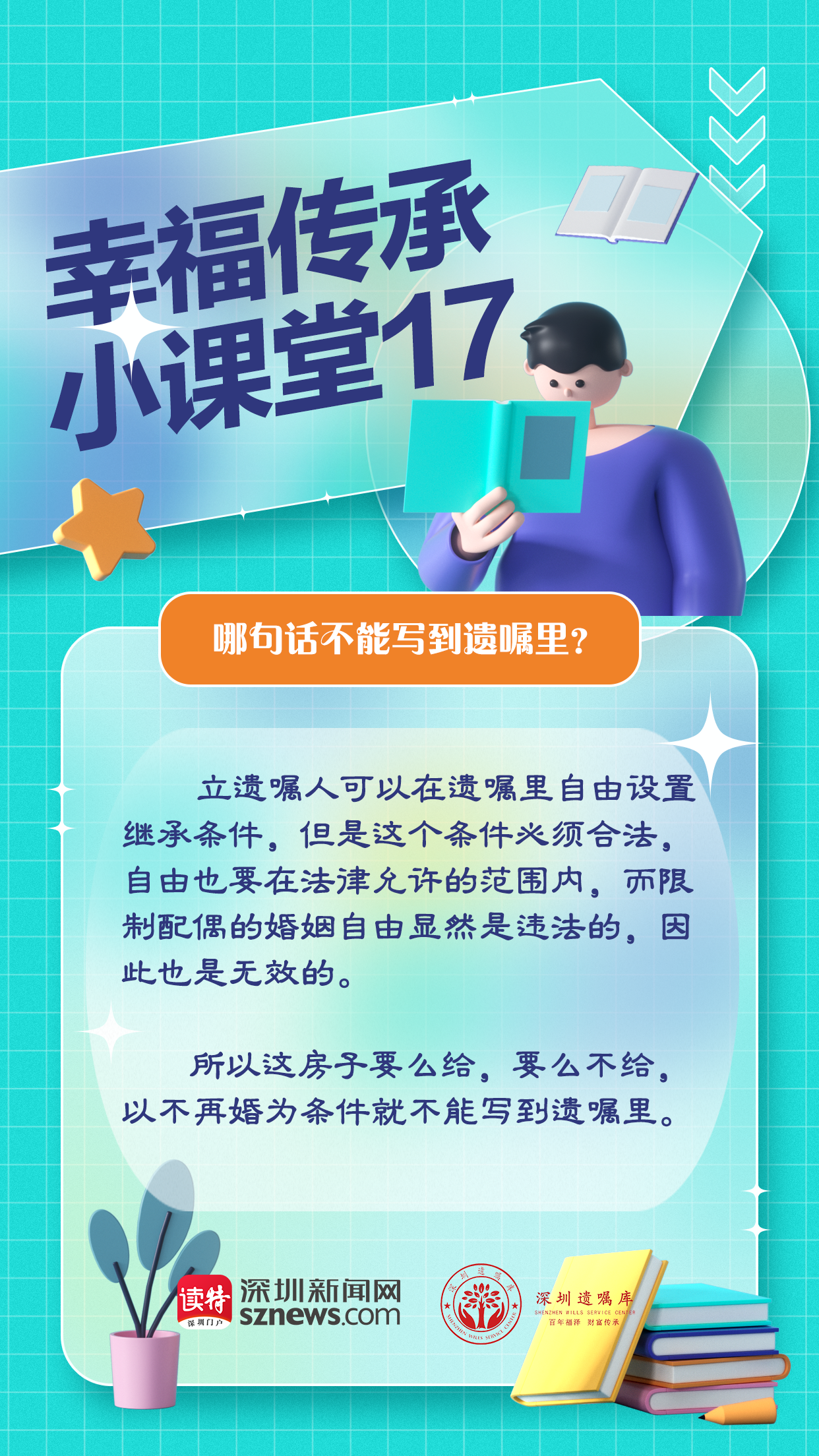 由深圳新聞網(wǎng)聯(lián)合廣東嘉得信律師事務(wù)所、深圳遺囑庫(kù)特別策劃的“幸福傳承小課堂”第17期就來(lái)說(shuō)說(shuō),哪些話不能寫(xiě)到遺囑里。上述案例的老兩口考慮很周全,他們把各個(gè)銀行的存款都列了一個(gè)明細(xì)單,標(biāo)明了分配方式,哪一筆給兒子,哪一筆留給女兒,總體來(lái)說(shuō)兒女分到的財(cái)產(chǎn)都差不多。