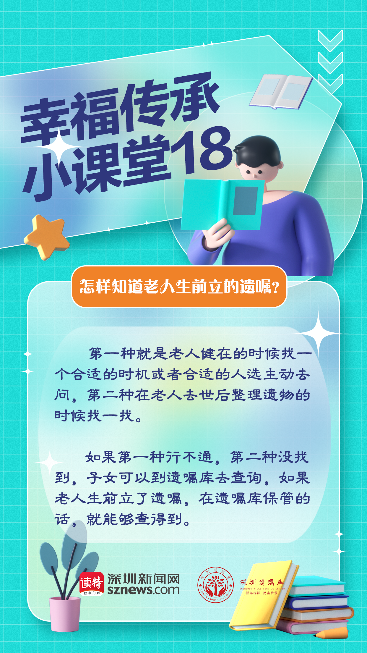 還有一種方法是在老人去世后整理遺物的時候可能發(fā)現(xiàn)書面遺囑。當然還有第三種辦法。由深圳新聞網(wǎng)聯(lián)合廣東嘉得信律師事務所、深圳遺囑庫特別策劃的“幸福傳承小課堂”第18期,我們來聊聊第三種辦法查詢老人生前立的遺囑。如果第一種辦法行不通,第二種辦法又找不到的話,我們的建議是,可以去遺囑庫查詢。在老人去世后,如果老人生前立了遺囑,在遺囑庫保存的話,就可以找得到。