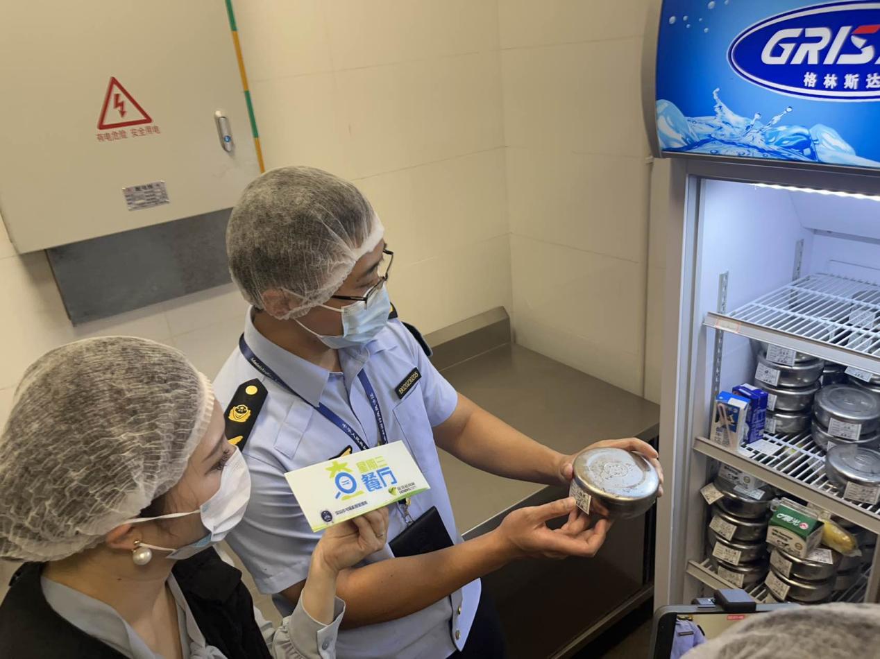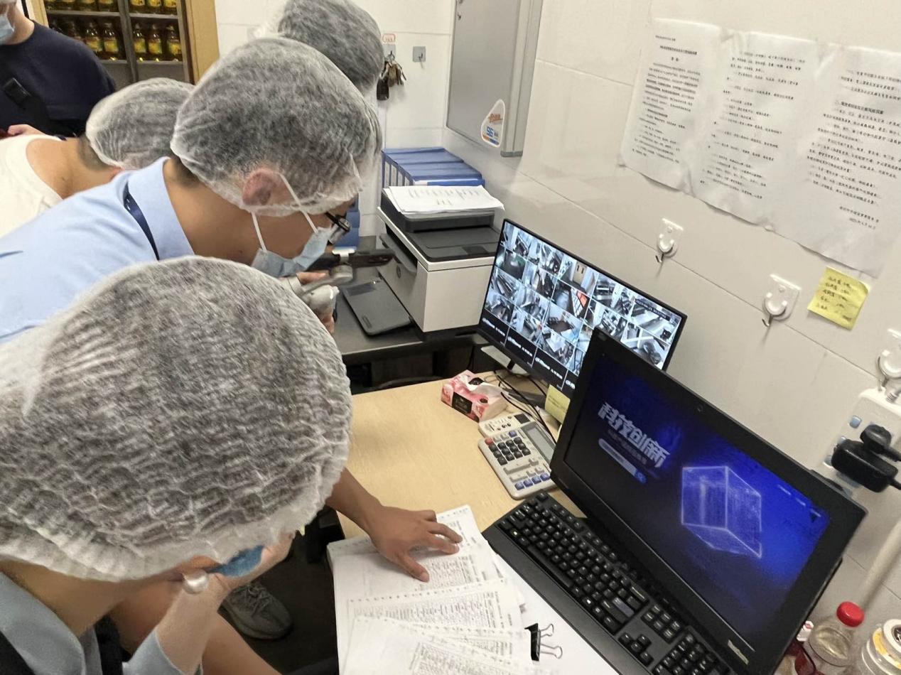 隨后,執(zhí)法人員一行進入食堂后廚,對面點間、儲藏間、清洗區(qū)、冷凍庫等各分區(qū)進行執(zhí)法檢查。經(jīng)查,后廚整體布局合理,其中食材存儲符合規(guī)定且日期均在保質(zhì)期內(nèi);留樣冰箱內(nèi)按規(guī)定保存了近期餐食樣品,留樣品名及時間標注清晰,確保了來源可追溯;清洗區(qū)分區(qū)明確,刀具砧板按照顏色管理,有效避免了交叉感染。此外,在后廚辦公室,執(zhí)法人員查看了索證索票落實情況及日管控、周排查、月調(diào)度等相關制度管理資料,各類信息管理較完善。