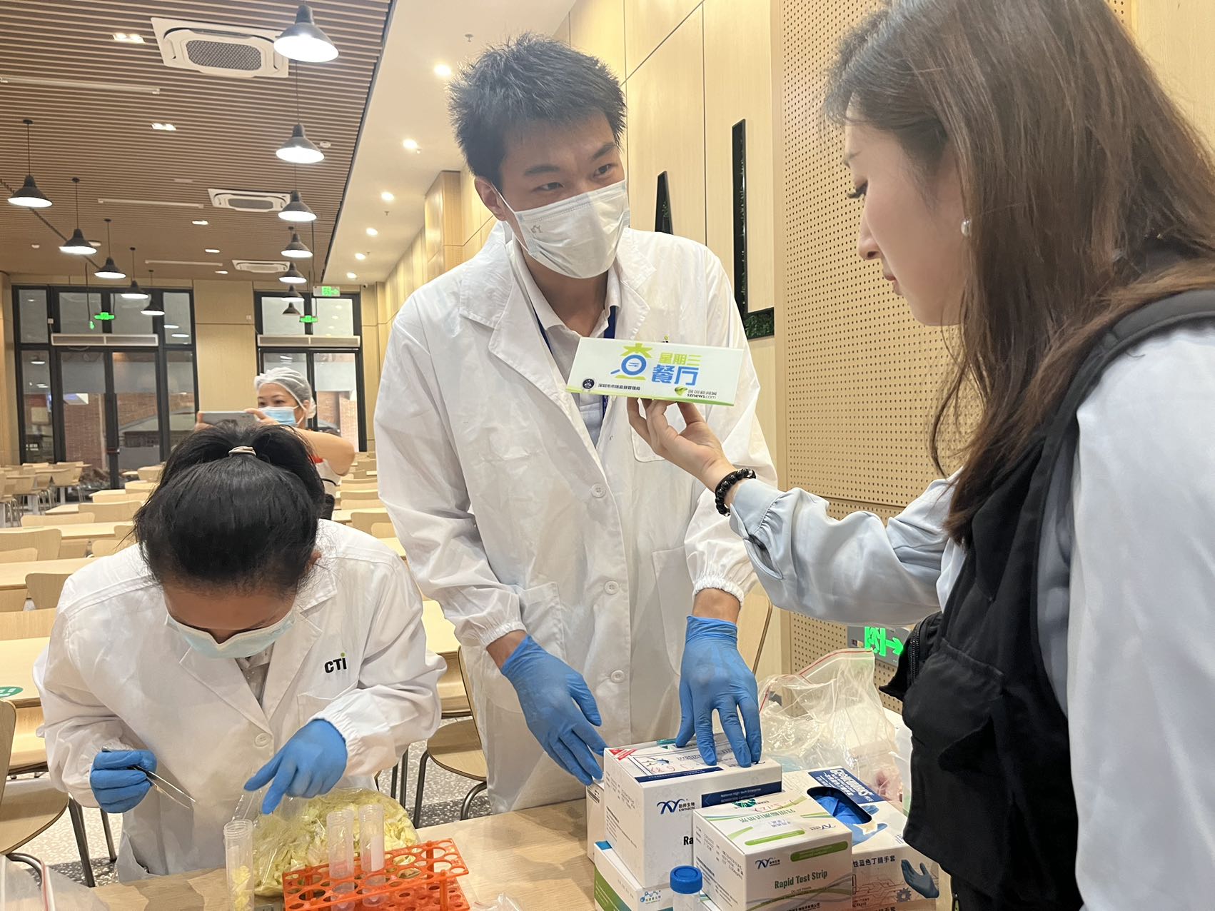 執(zhí)法行動進行的同時,快檢人員也來到現(xiàn)場對食材進行抽樣檢測。據(jù)介紹,本次抽樣檢查的食材樣品均合格。