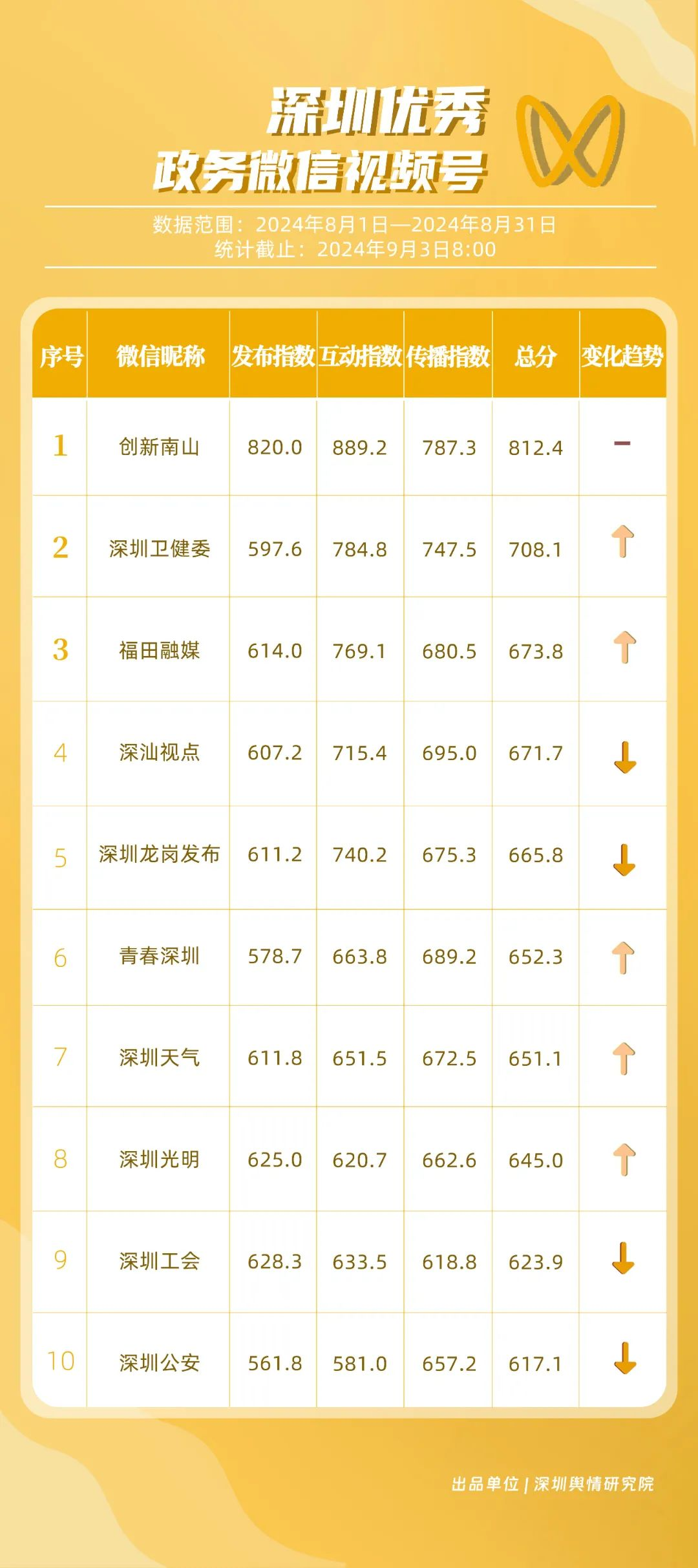 8月“深圳優(yōu)秀政務(wù)新媒體矩陣”發(fā)布,這個(gè)矩陣排名提升,躋身前十!