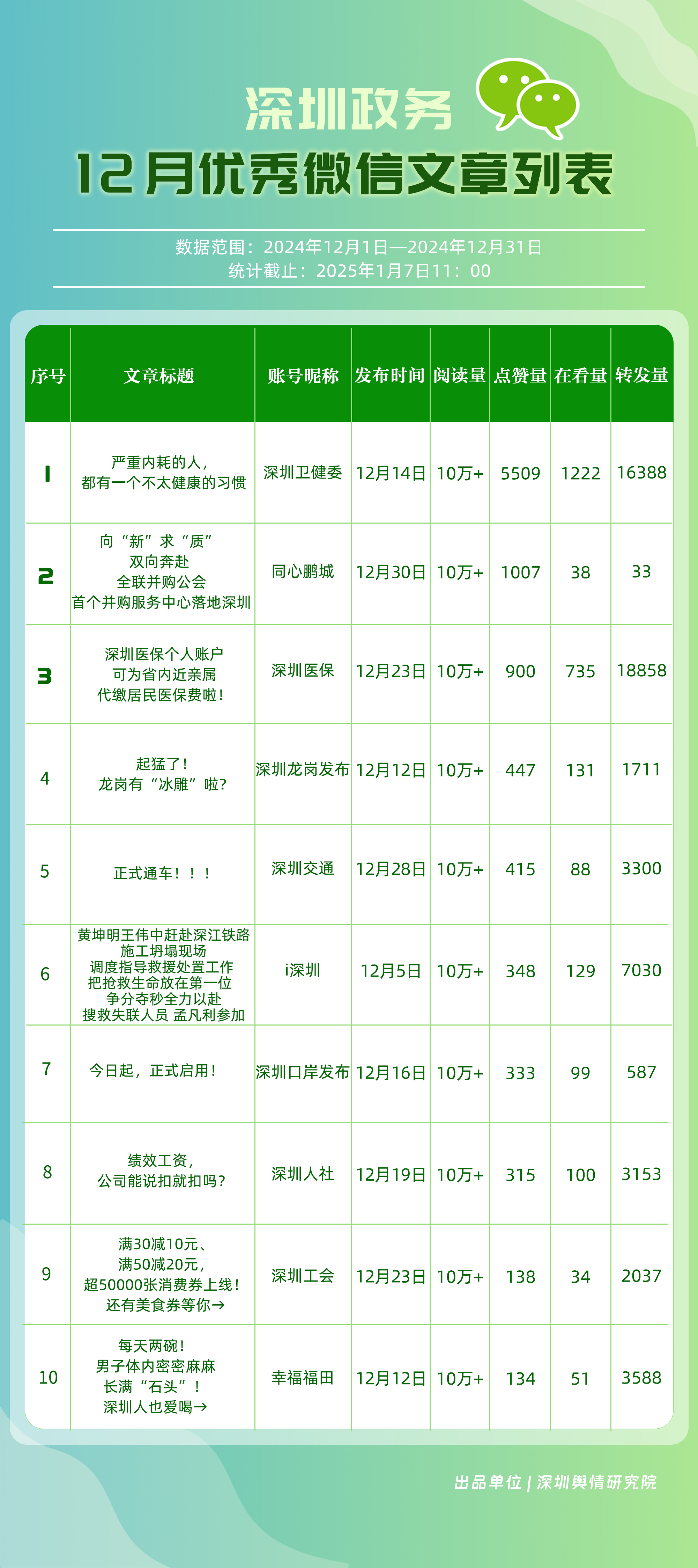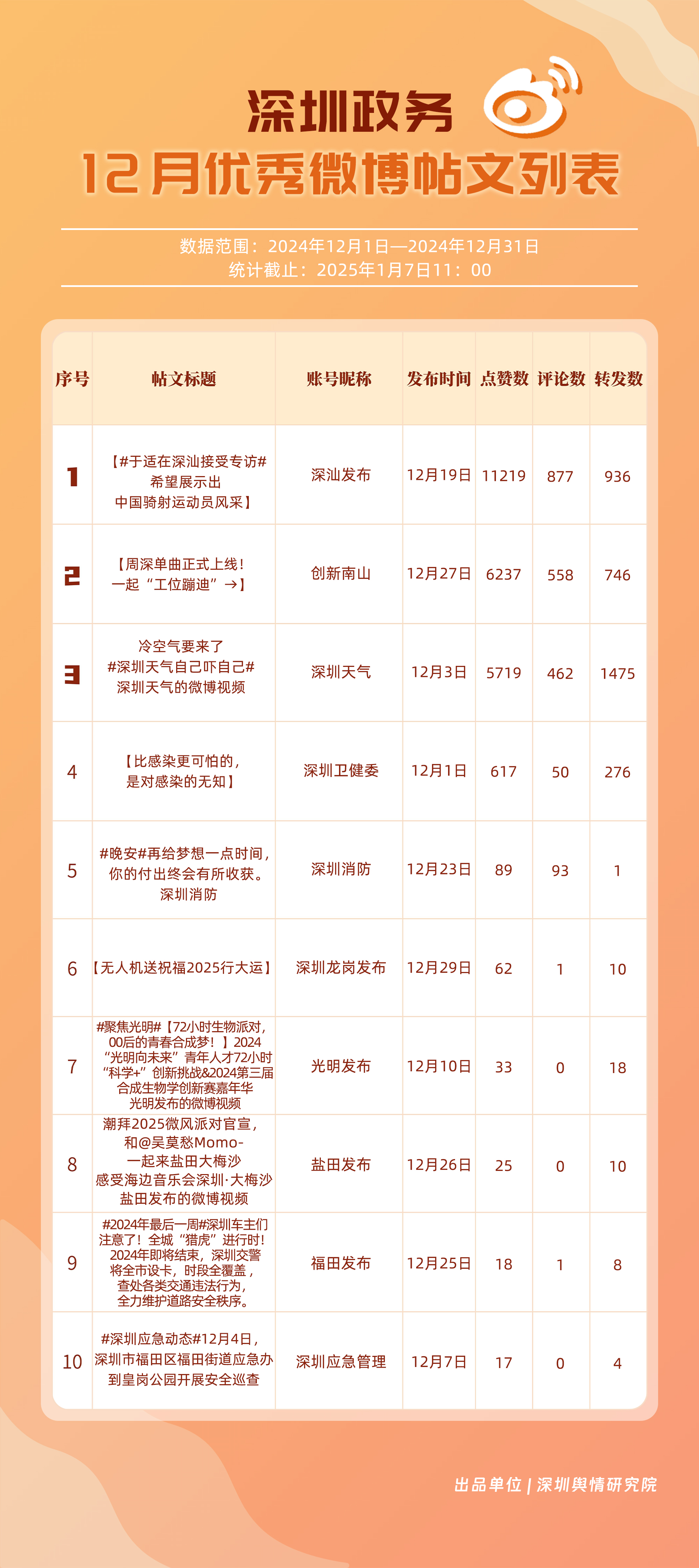 四、12月深圳優(yōu)秀政務新媒體賬號