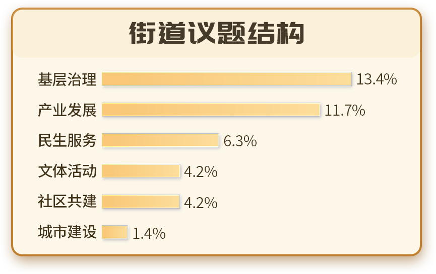 再看議題結(jié)構(gòu),街道傳播最穩(wěn)定的內(nèi)容,來自日常工作本身。