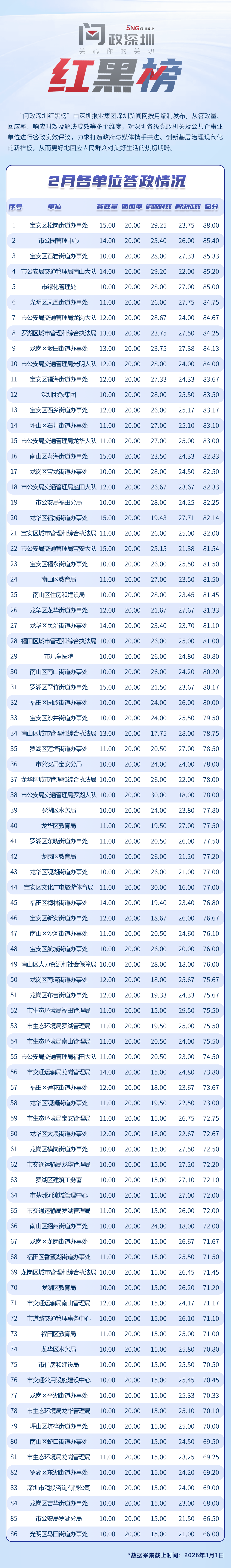 2026年2月,深圳各級(jí)黨政機(jī)關(guān)及公共企事業(yè)單位在“深圳論壇”答政情況如下: