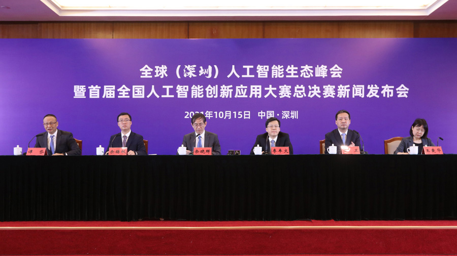 2021年10月15日上午,深圳市工業(yè)和信息化局、龍華區(qū)人民政府、中國信息通信研究院、中國人工智能產(chǎn)業(yè)發(fā)展聯(lián)盟聯(lián)合舉行全球(深圳)人工智能生態(tài)峰會暨首屆全國人工智能創(chuàng)新應用大賽總決賽新聞發(fā)布會,中國信息通信研究院院長余曉暉,深圳市人民政府副秘書長李卓文,深圳市工業(yè)和信息化局黨組書記、局長余錫權,龍 ...